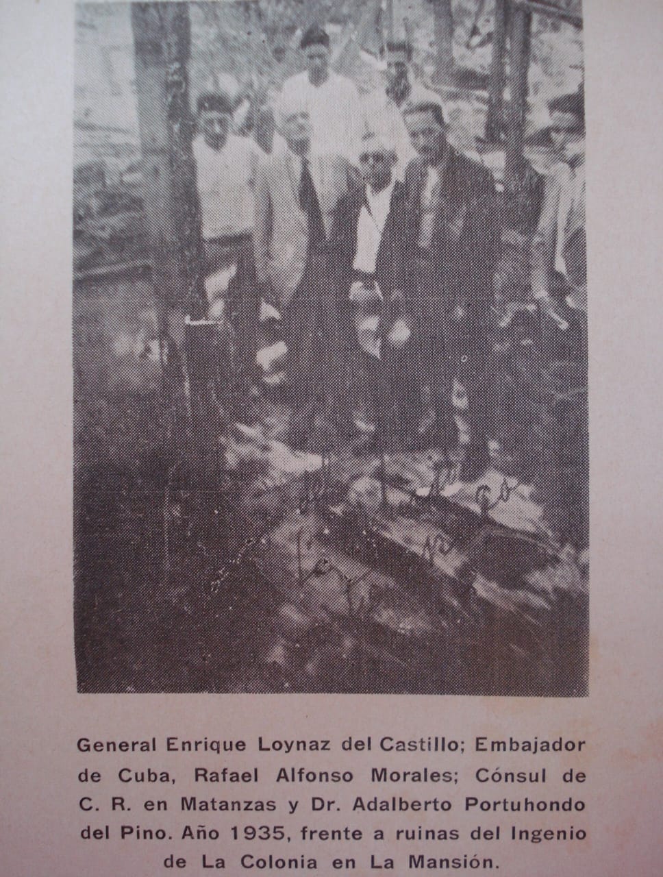 General Enrique Loynaz del Castillo y varios acompañantes en las ruinas del ingenio azucarero de Mansión. (1935)(Donativo de H. Montiel Carrillo)